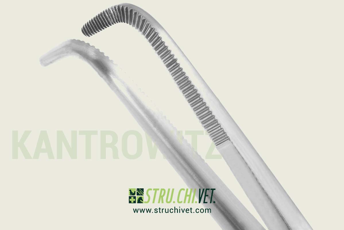 - Le pinze toraciche Kantrowitz sono dotate di un’impugnatura ad anello con cricchetto e di delicate ganasce seghettate ad angolo retto, ideali per interventi di chirurgia toracica. La ganascia ad angolo retto è utile per raggiungere aree del corpo più difficili da raggiungere con modelli dritti o curvi.