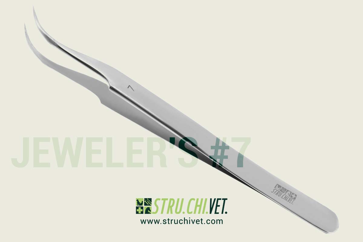 - Pinzetta da Gioielliere #7 sono realizzate a mano in acciaio inossidabile tedesco di grado chirurgico. Progettate con punte dritte e affusolate a 5 punte, extra-fini o micro-fini, per un controllo ottimale, queste pinze sono ideali per il posizionamento di innesti e altri lavori di precisione. Le impugnature piatte consentono una presa comoda per il chirurgo.